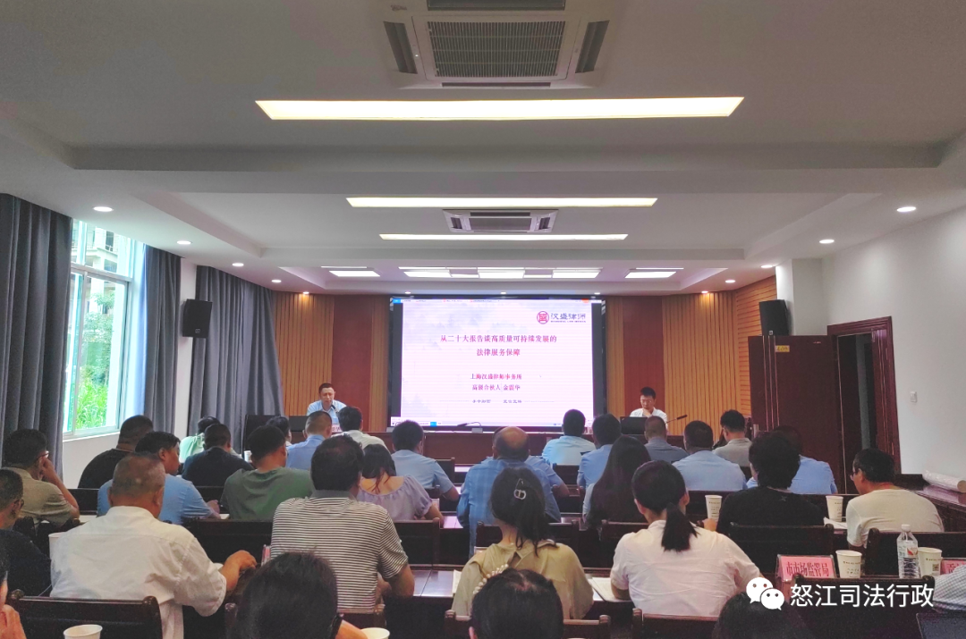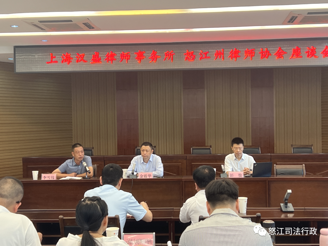 8月10日上午,应怒江州司法局、怒江州律师协会的邀请,上海汉盛律师事务所党委书记、高级合伙人金震华和上海汉盛律师事务所高级合伙人、上海市律师协会基金业务研究委员会委员彭俊与怒江20多名律师举行交流座谈会,就事务所发展的理念、管理模式与风险防控等进行积极而富有成效的交流。